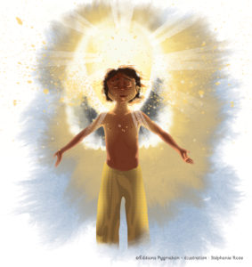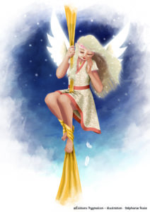 Ce qui m’a séduit dans ce projet est le fait d’imaginer et de dessiner des anges qui n’ont rien a voir avec l’image religieuse qu’on s’en fait. Il m’a permis d’explorer une autre façon de dessiner avec un outil, que je n’avais pas vraiment utilisé en profondeur, qu’est la palette graphique. Ce projet m’a aussi permis de laisser parler mon enfant intérieur car c’était un rêve que j’avais depuis très longtemps que de faire de belles illustrations pour un livre et il m’a permis de me prouver à moi-même que j’en étais capable. Je suis très contente du résultat final et de la qualité de mes dessins.