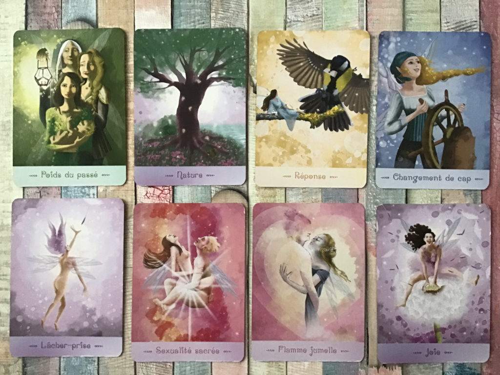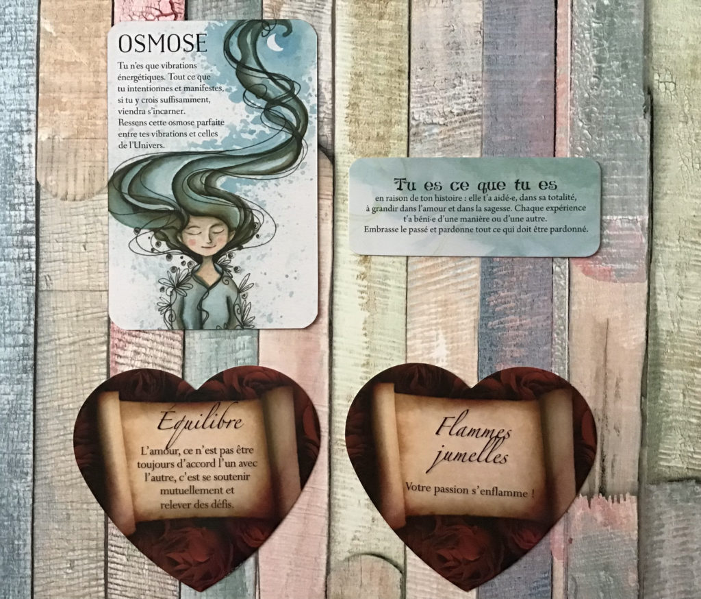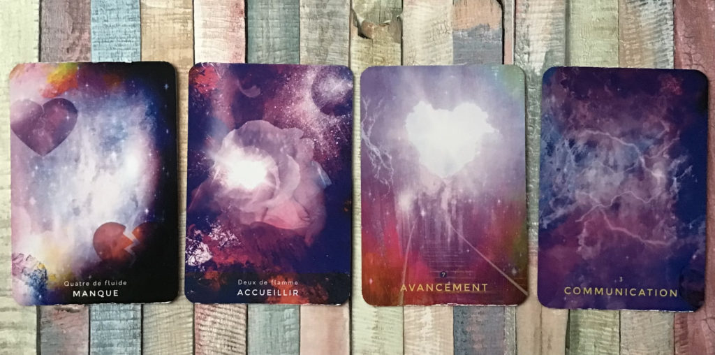 Impressionnée par les cartes Flammes Jumelles qui sont tombées plusieurs fois tant pour le Masculin que pour la Féminine. Les prises de conscience se font plus nombreuses, la Source veille à ce que chacun des jumeaux respecte son contrat d’âme. Réunis, ils brillent de mille feux et œuvrent pour l’humanité. C’est magnifique, j’en suis émue…
