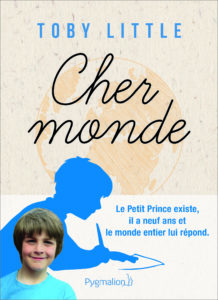 Toby Little est un jeune anglais de neuf ans, qui écrit au monde entier afin d’apprendre à connaître les autres. Ce Petit Prince des temps modernes a trouvé l’inspiration le 16 juin 2013, quand il est rentré de l’école avec un livre intitulé « Une lettre pour la Nouvelle Zélande ». Àgé de cinq ans et demi, il a constaté que ce pays était très loin de chez lui. Il a demandé à sa maman s’il pouvait envoyer des lettres au monde entier. Mais à qui exactement ? Sa mère a trouvé un premier contact bienveillant à Hawaï et c’est comme ça que l’aventure a commencé. Depuis son projet qui lui tient tant à cœur fait le tour du monde. Toby n’a pas cessé d’échanger avec des personnes (enfants, adultes) des quatre continents. Plus de mille lettres déjà écrites et beaucoup d’informations partagées notamment sur la faune et la flore ainsi que sur les lieux où trouver des fossiles, des photos, des dessins et même des recettes de cuisine, qui lui donnent des détails sur le quotidien de ses correspondants et sur leurs différents modes de culture. Quelques unes de ces lettres les plus touchantes sont réunies dans son ouvrage « Cher monde » paru, il y a quelques mois, aux éditions Pygmalion. Une version anglaise a vu le jour en 2016 et depuis il est traduit dans une dizaine de pays.